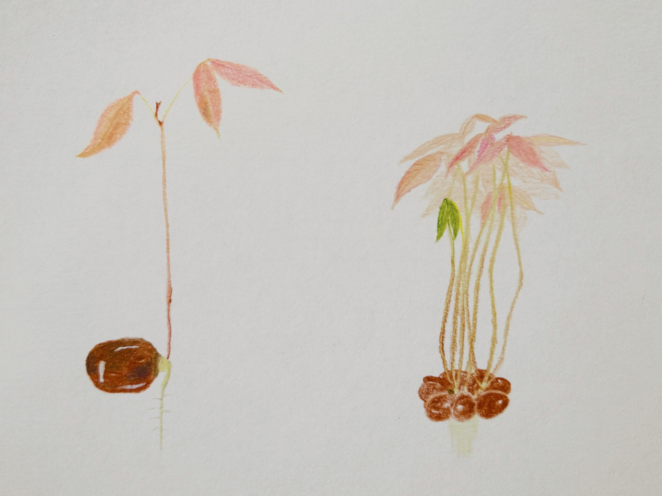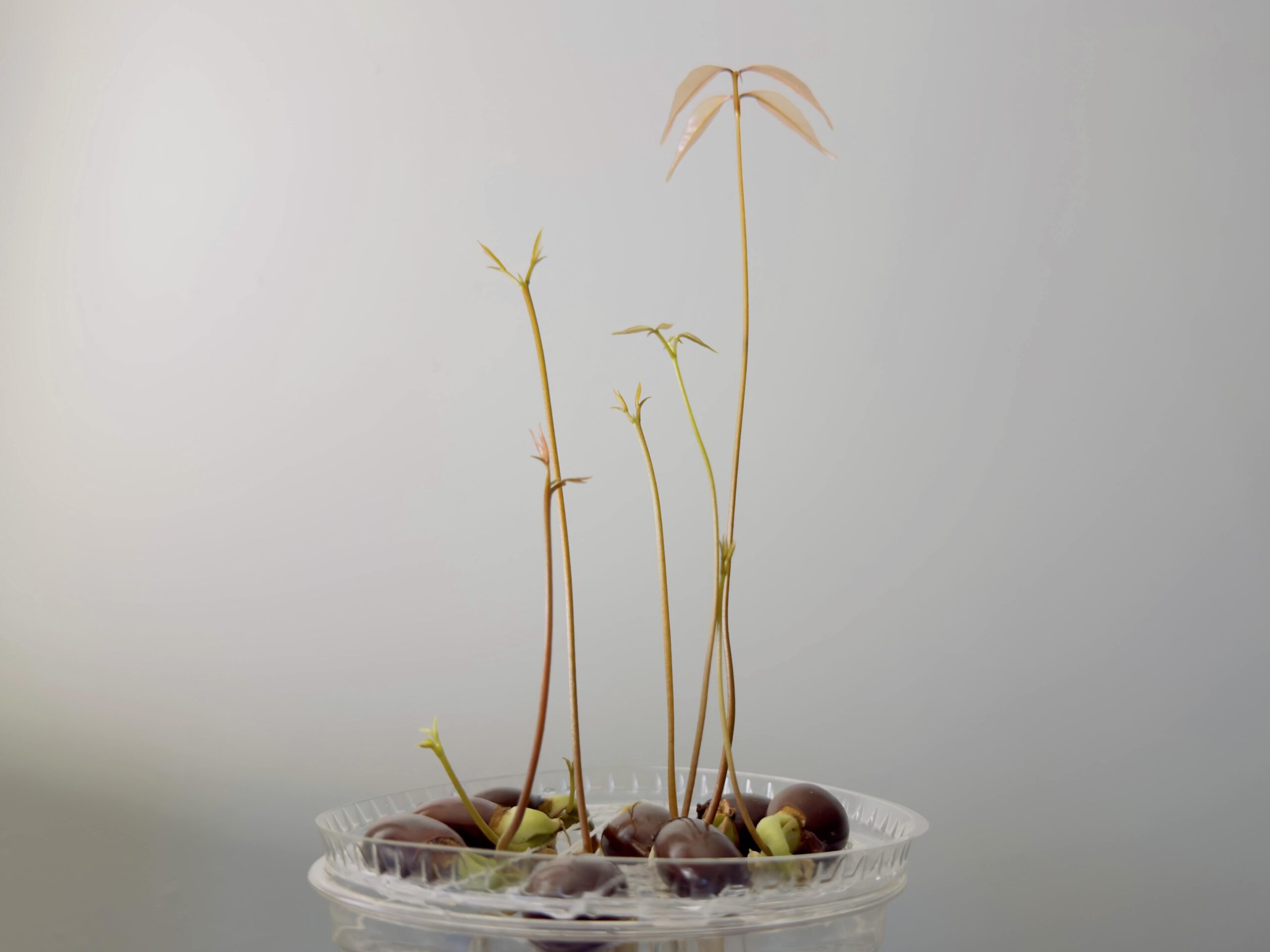 The choice of lychee variety is also significant. A variety named feizixiao does not work. The name means “the smile of imperial concubine,” echoing a Tang Dynasty story of Emperor Xuanzong having lychees rushed across the whole empire from the deep south to the central capital to delight his beloved concubine. The problem with this variety is that the pits are too thin for the sprouts to come out. What cultivators desire are the big, round, strong pits, with plenty of nutrition and fecundity. While fruit lovers want to maximize the pulp and minimize the pits, cultivators want the opposite, which amuses the market vendors when they hear people want lychees’ disposable centers: “Do you sell lychees with big pits?” / “Rest assured. All lychees here have small pits.”