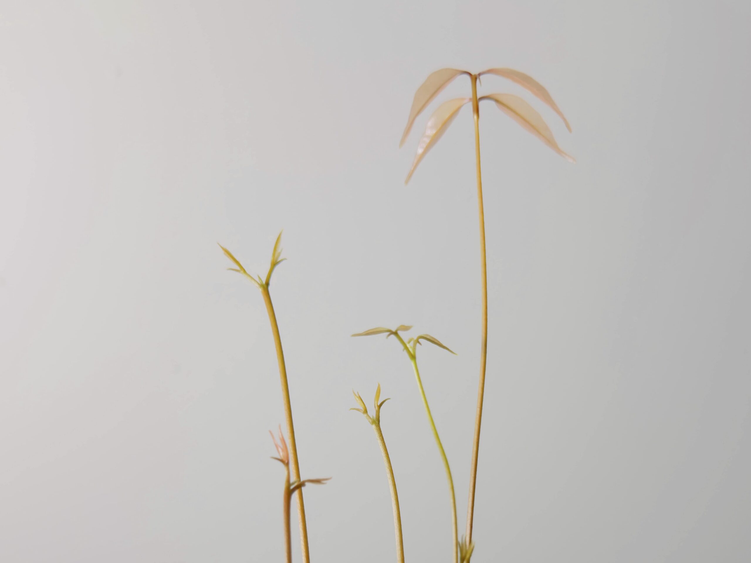 Like alchemists experimenting with their craft, the lychee enthusiasts talk about how to get varied coloration on the plant. Pink is not the only effect that results. There are a variety of pink shades, from light to mid-range pinkness, but not dark pink, as well as light yellow and white leaves. Eventually some people take the roots from water to soil in the sun, turning the leaves from pink to light green, and eventually dark green. Sometimes new leaves grow on top of green leaves, yielding an effect of multiple colors on the same plant: pink, yellow, and green. Cultivators share detailed techniques in RedNote posts and troubleshoot for each other in the comment sections. The precise timing of light exposure is crucial: too much sunlight and the leaves turn green; too little, and the leaves become weak and withered. During the initial sprouting phase, sunlight control is not necessary. However, cultivators warn against placing lychees in completely dark environments too early, because then the stems would stretch dramatically tall without producing any leaves at all, even the pink ones, resulting in spindly, leafless shoots.